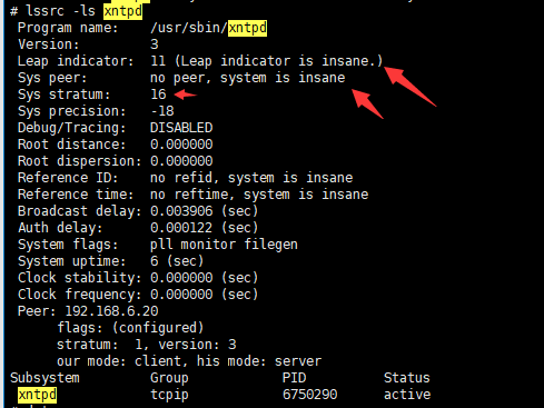 startsrc -s xntpd -a “-x” #启动后等待系统识别。