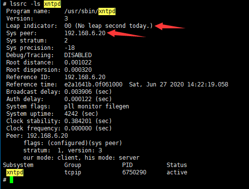 lssrc -ls xntpd